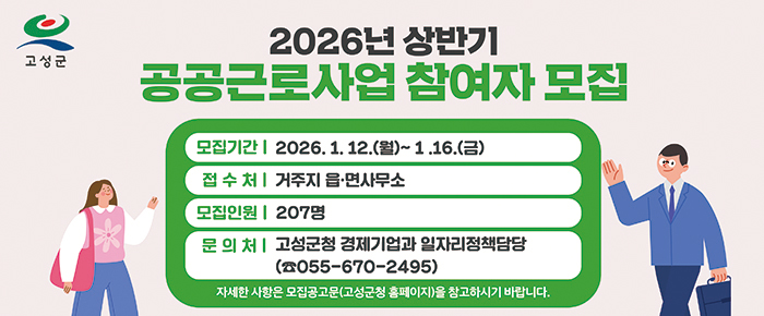 - 고성군 상반기 공공일자리사업 참여자 모집